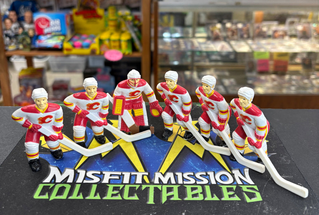 Wayne Gretzky Hockey NHL Table Hockey Players NHL Calgary Flames Home Team, used in good condition. You will get the full line of 6 players.