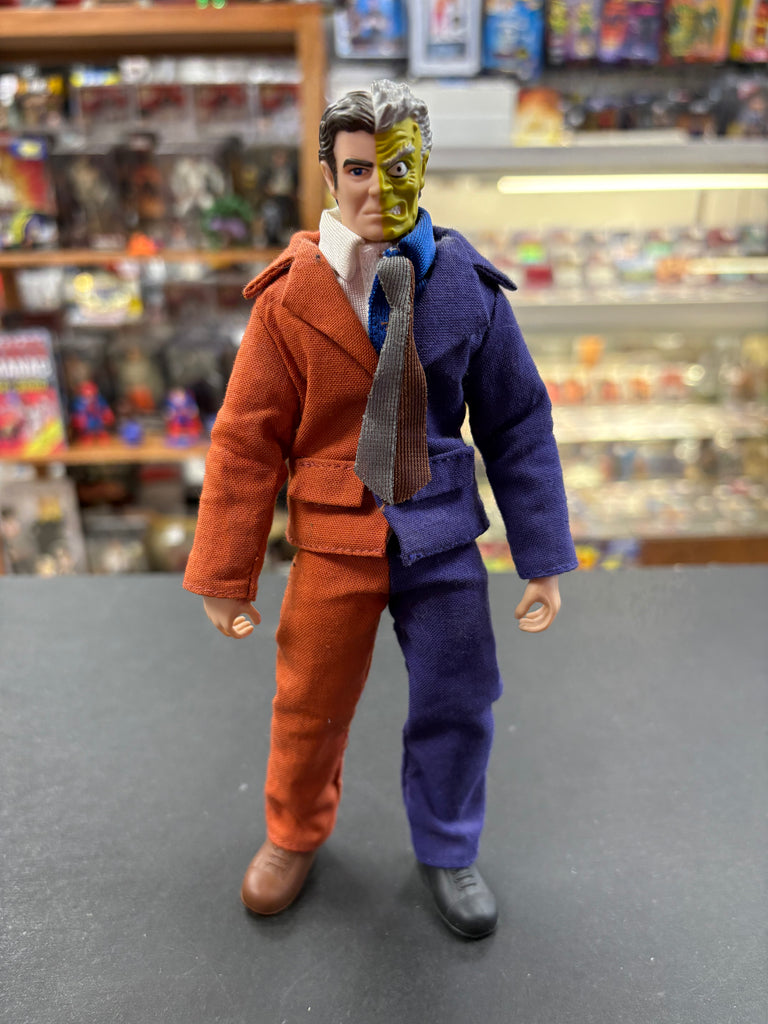 Mattel Retro Action Super Heroes Mego Style 8” DC comics Batman’s Two Face Figure. His waistline elastic is a bit lols but he still stands fine. But he is in other wise great shape!!