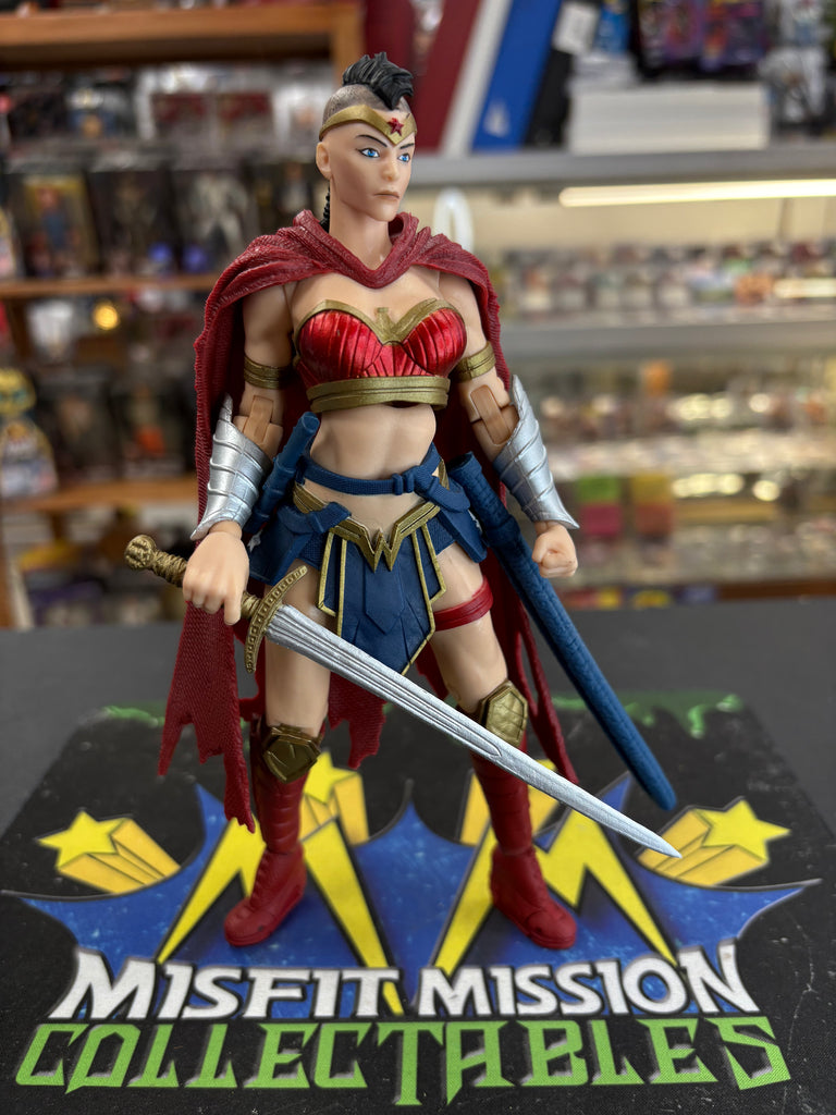 McFarlane DC Multiverse Last Knight on Earth Wonder Woman Figure, previously owned in displayed only condition.