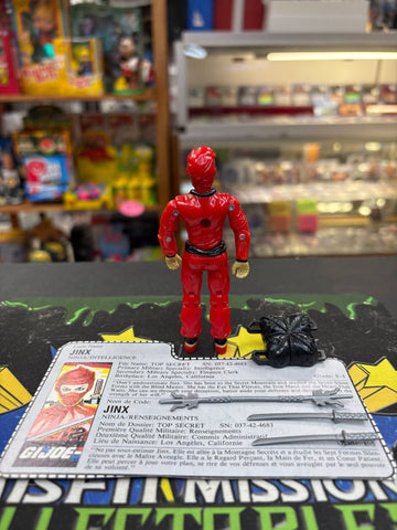 Vintage Hasbro 1987 GI Joe Jinx Figure, previously owned complete in very good condition. A must-have for serious collectors. This piece will elevate any collection to the next level!!