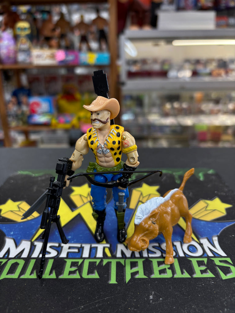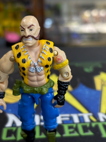 Vintage Hasbro 1989 GI Joe Dreadnok Poacher Gnawgahyde Figure. This figure is complete in good shape. It comes repackaged into the original package bubble as shown in the pictures inside a comic book bag and board. There is one small crack on his left elbow also pictured. This unique collectable is a must for any true collector!!