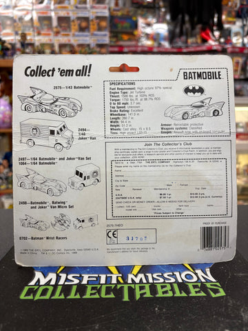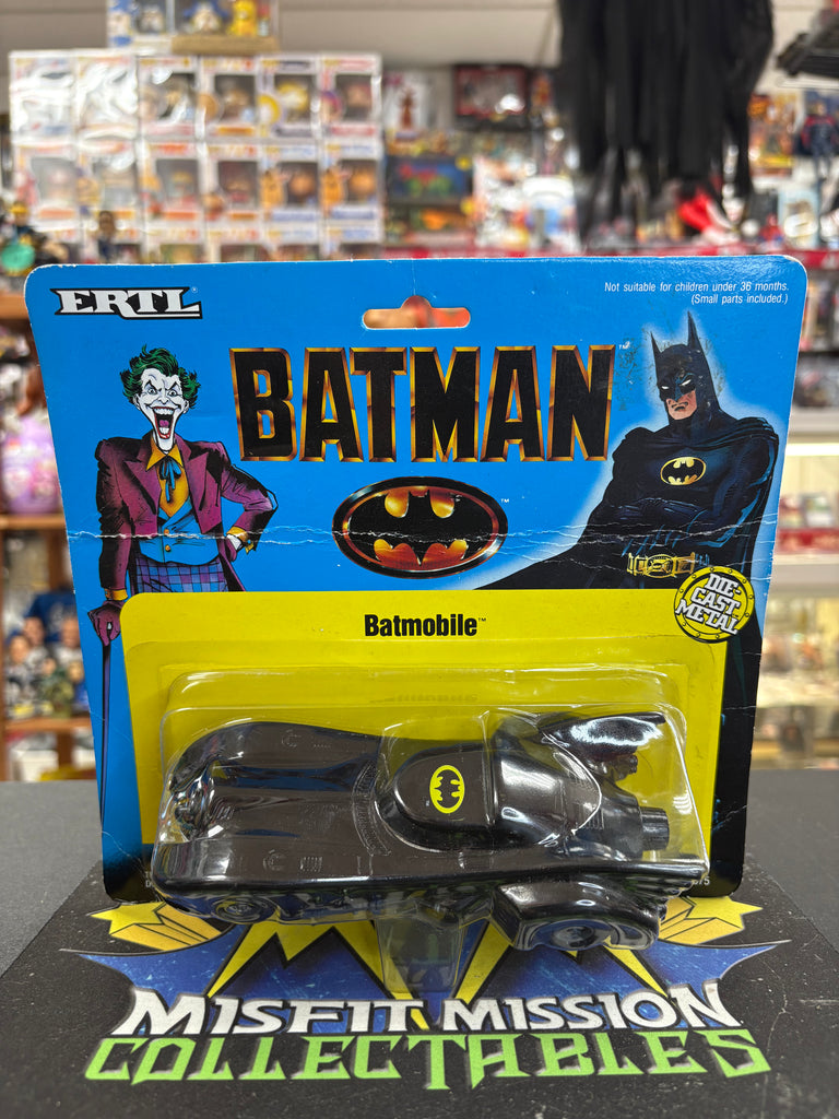 1989 ERTL Batman Batmobile Car, new in the package. As you can see in the picture the car has a crease but it is in otherwise good shape.