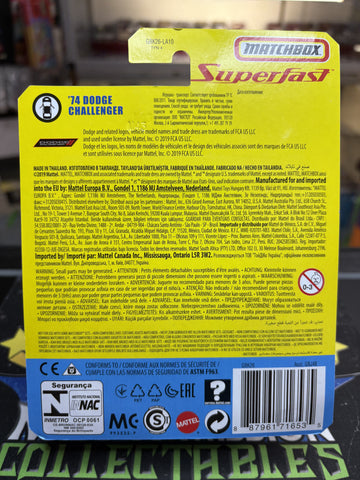 2019 Matchbox Superfast ‘74 Dodge Challenger, new in Package.