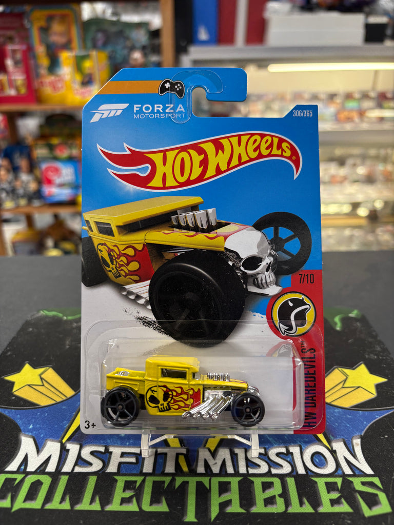 2015 Hot Wheels Forza HW Daredevils Bone Shaker Yellow Car, new in the package.