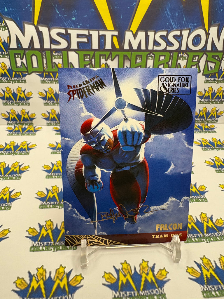 1995 Fleer Ultra Marvel Spider-Man Gold Foil Signature Series Falcon #116 Trading Card, in good condition.