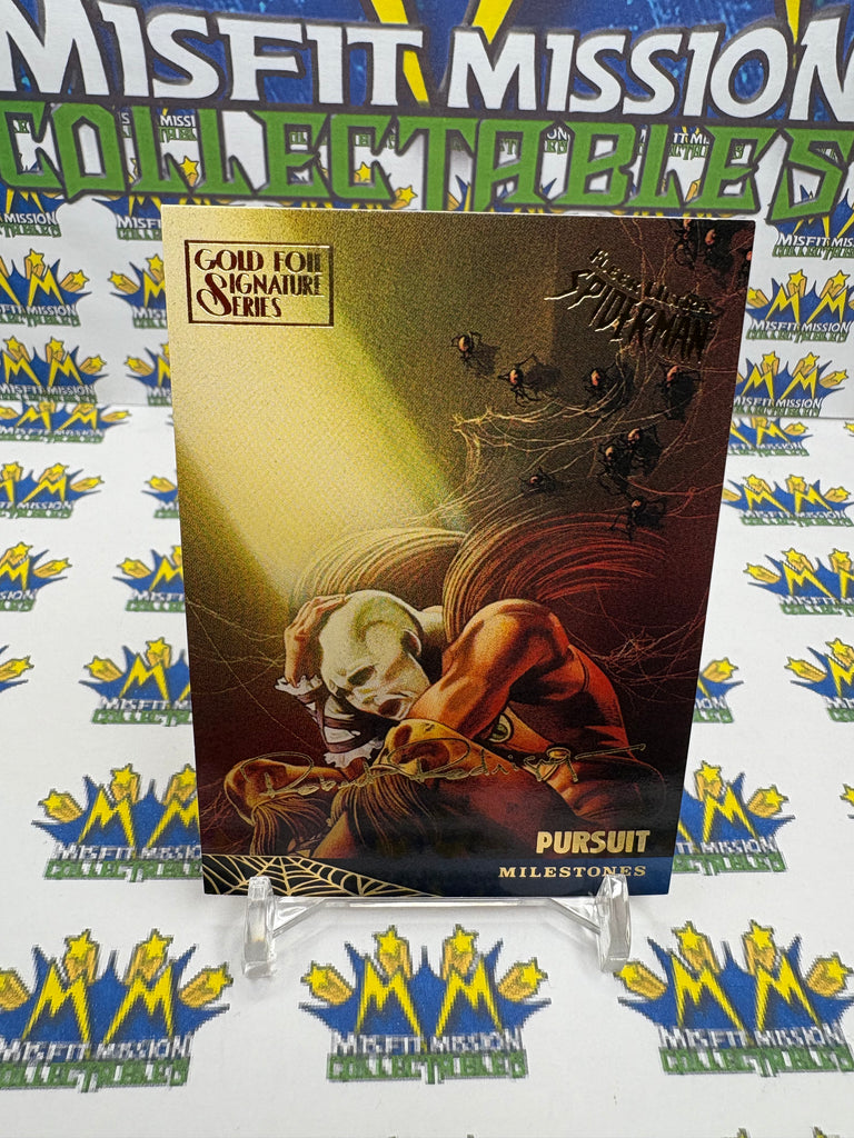 1995 Fleer Ultra Marvel Spider-Man Gold Foil Signature Series Pursuit #92 Trading Card, in good condition.