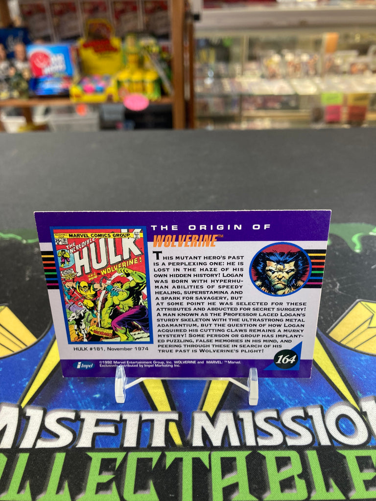 Impel Marvel Comics 1992 Marvel Universe Origins Wolverine #164 Trading Card, in good condition.