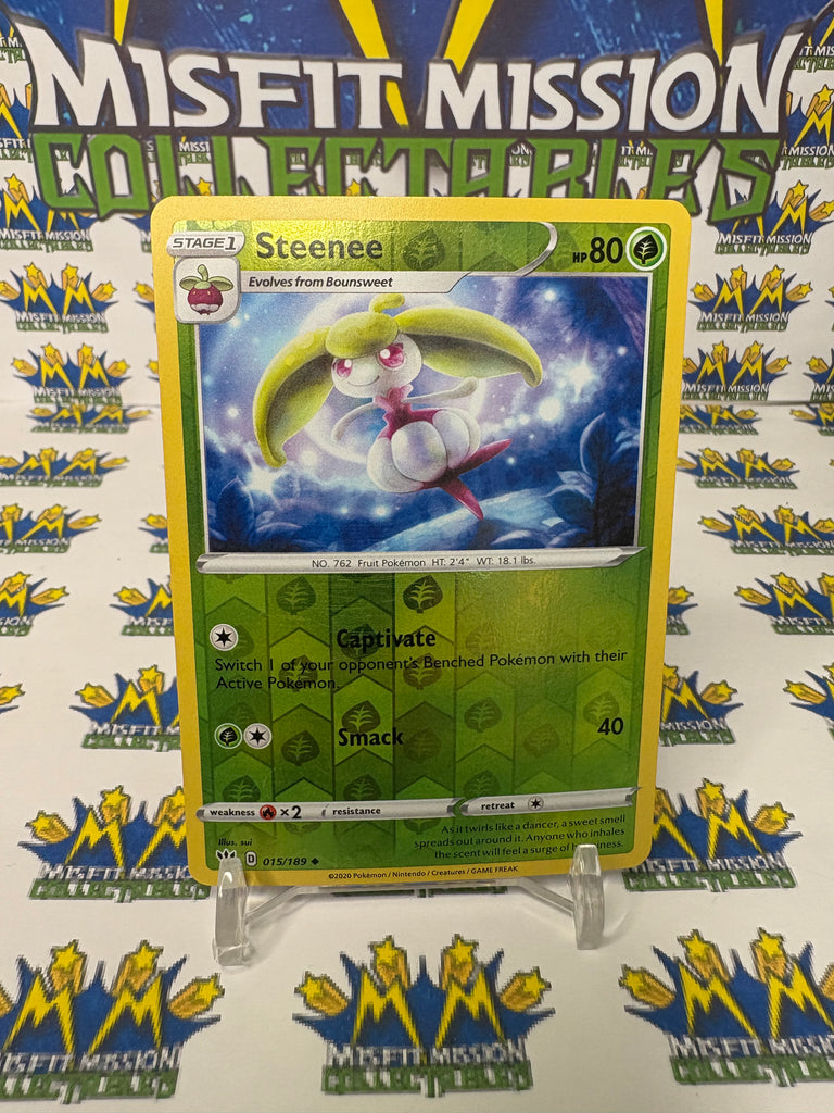 Pokemon Darkness Ablaze Reverse Holo Steenee 015/189 Trading Card, previously owned good condition.
