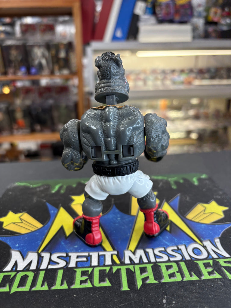Vintage 1992 TMNT Teenage Mutant Ninja Turtles Power Punchin Rocksteady Figure, previously owned in good condition. The punching action and head lock no longer work.