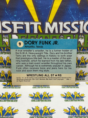1982 Wrestling All-Stars Dory Funk #9 Trading Card, previously owned in very good condition.
