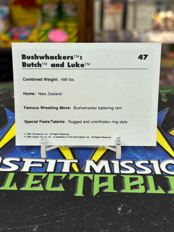 1990 WWF Classic Bushwhackers Butch and Luke #47 Trading Card, is a must-have for any wrestling fan. Perfect for adding to your collection or trading with fellow fans.