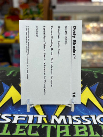 1990 WWF Classic Dusty Rhodes #16 Trading Card, is a must-have for any wrestling fan. Perfect for adding to your collection or trading with fellow fans.