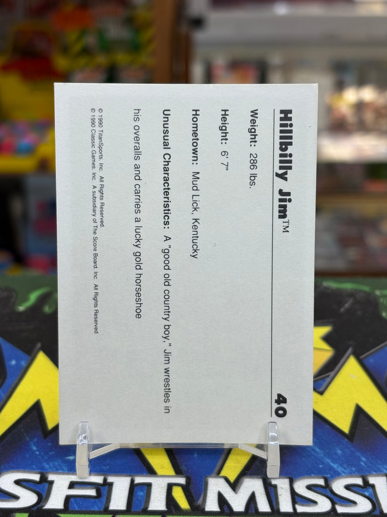 1990 WWF Classic Hillbilly Jim #40 Trading Card, is a must-have for any wrestling fan. Perfect for adding to your collection or trading with fellow fans.