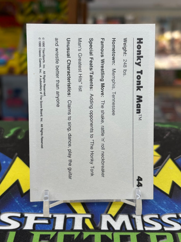 1990 WWF Classic Honky Tonk Man #44 Trading Card, is a must-have for any wrestling fan. Perfect for adding to your collection or trading with fellow fans.