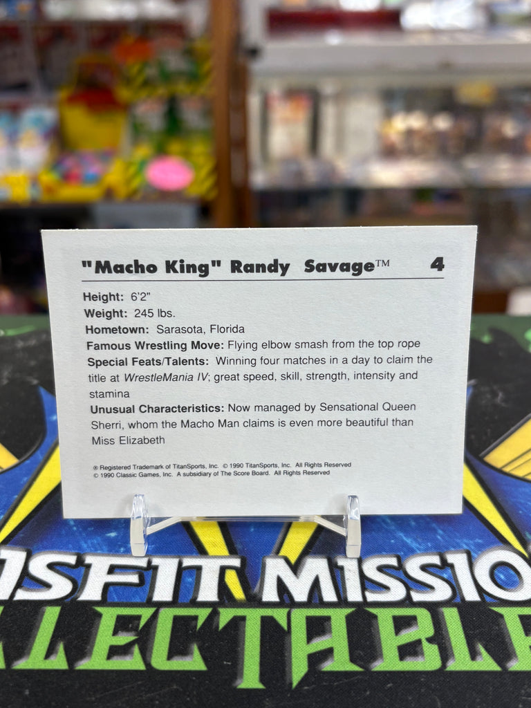 1990 WWF Classic Macho Man Randy Savage #4 Trading Card.