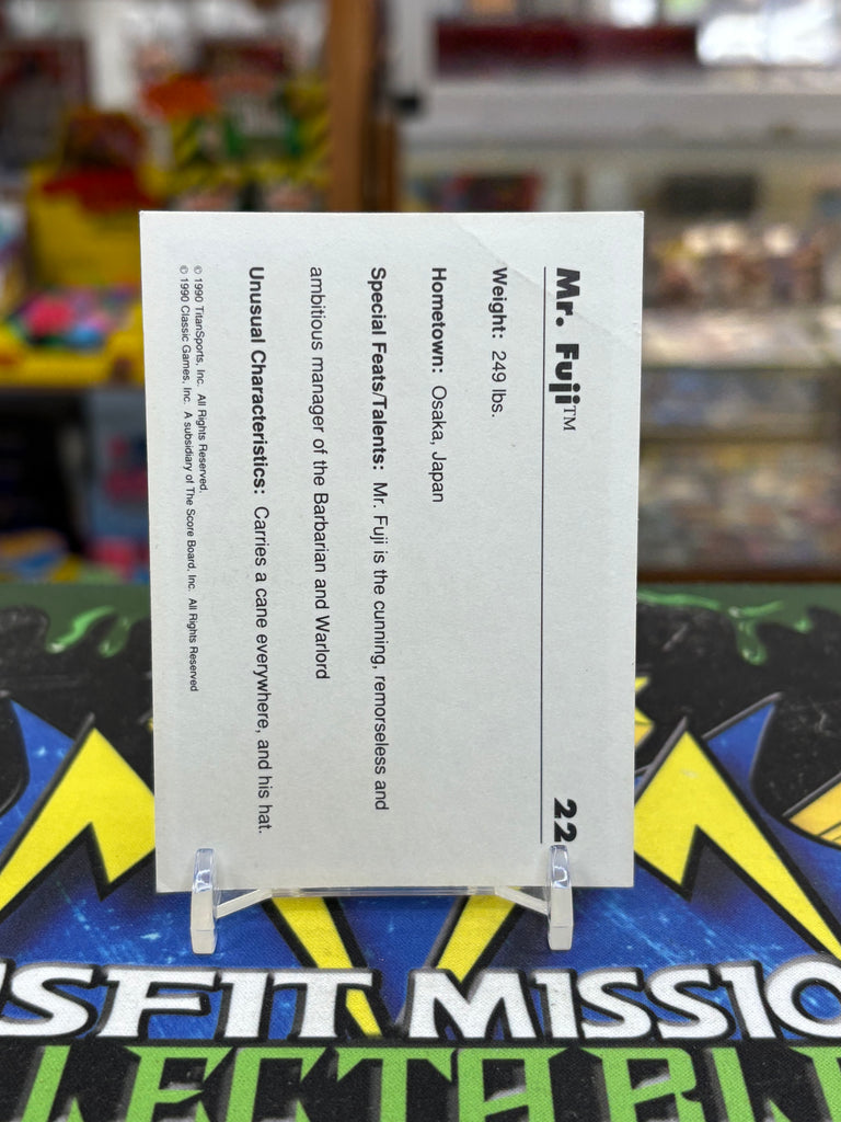 1990 WWF Classic Mr. Fuji #22 Trading Card, is a must-have for any wrestling fan. Perfect for adding to your collection or trading with fellow fans.