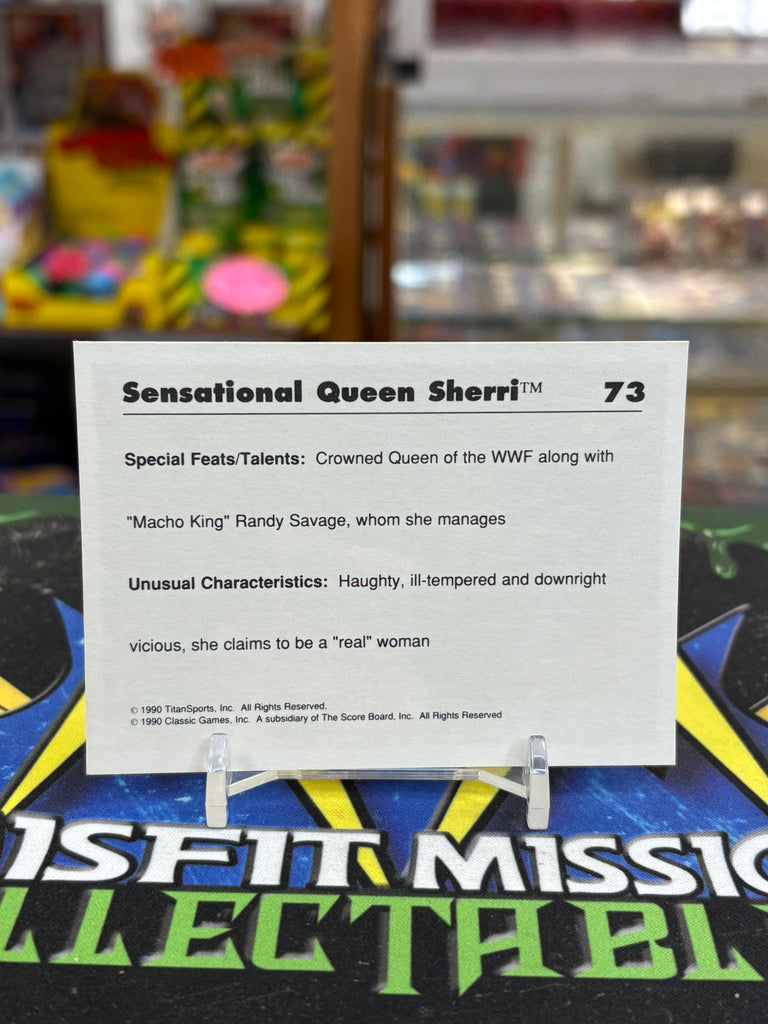 1990 WWF Classic Sensational Queen Sherri #73 Trading Card, is a must-have for any wrestling fan. Perfect for adding to your collection or trading with fellow fans.