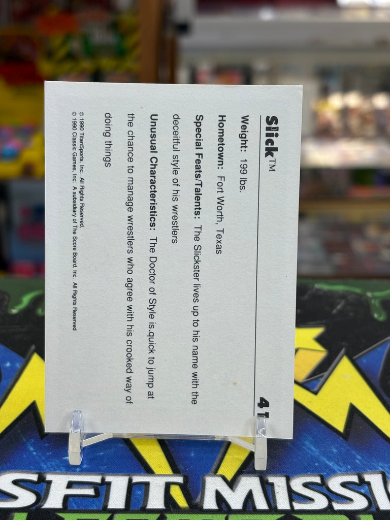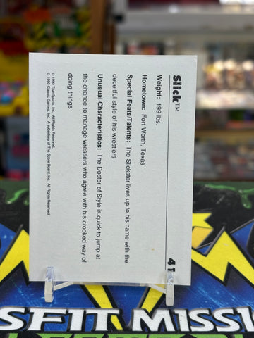 1990 WWF Classic Slick #41 Trading Card, is a must-have for any wrestling fan. Perfect for adding to your collection or trading with fellow fans.