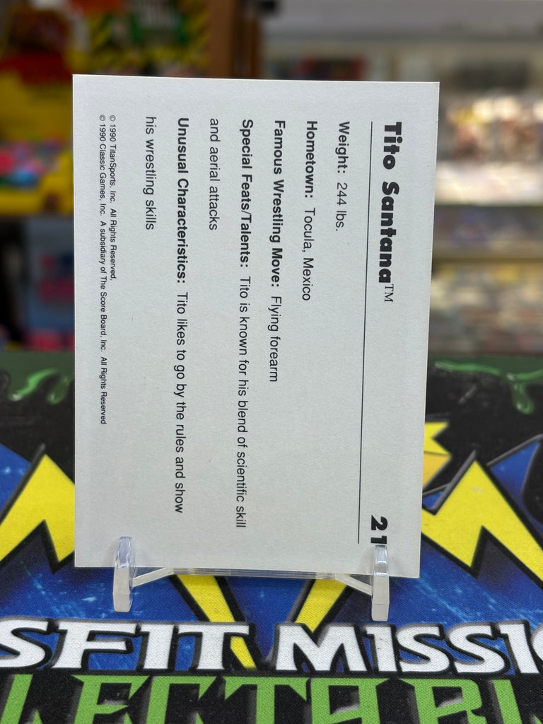 1990 WWF Classic Tito Santana #21 Trading Card, is a must-have for any wrestling fan. Perfect for adding to your collection or trading with fellow fans.