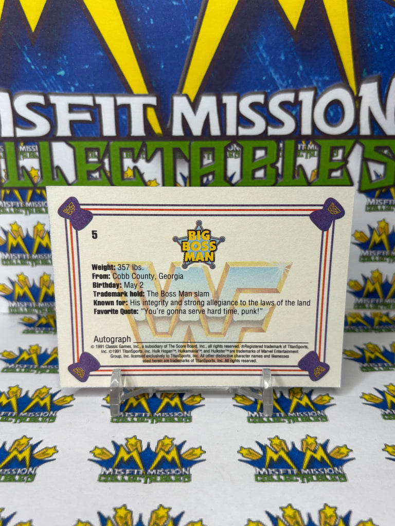 1991 WWF Classic Games Big Bossman #5 Trading Card, previously owned in good condition.