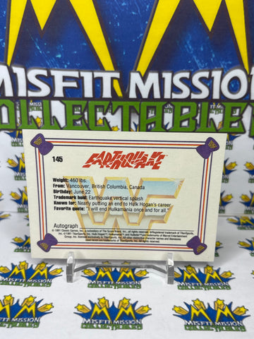 1991 WWF Classic Games Earthquake #145 Trading Card, previously owned in good condition.