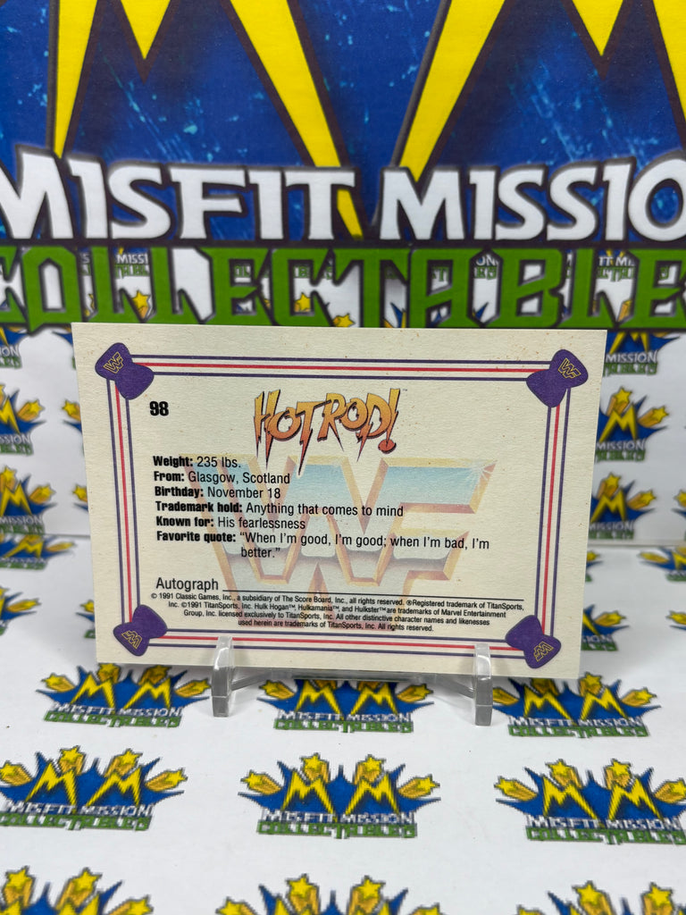 1991 WWF Classic Games Hot Rod Rowdy Roddy Piper #98 Trading Card, previously owned in good condition.