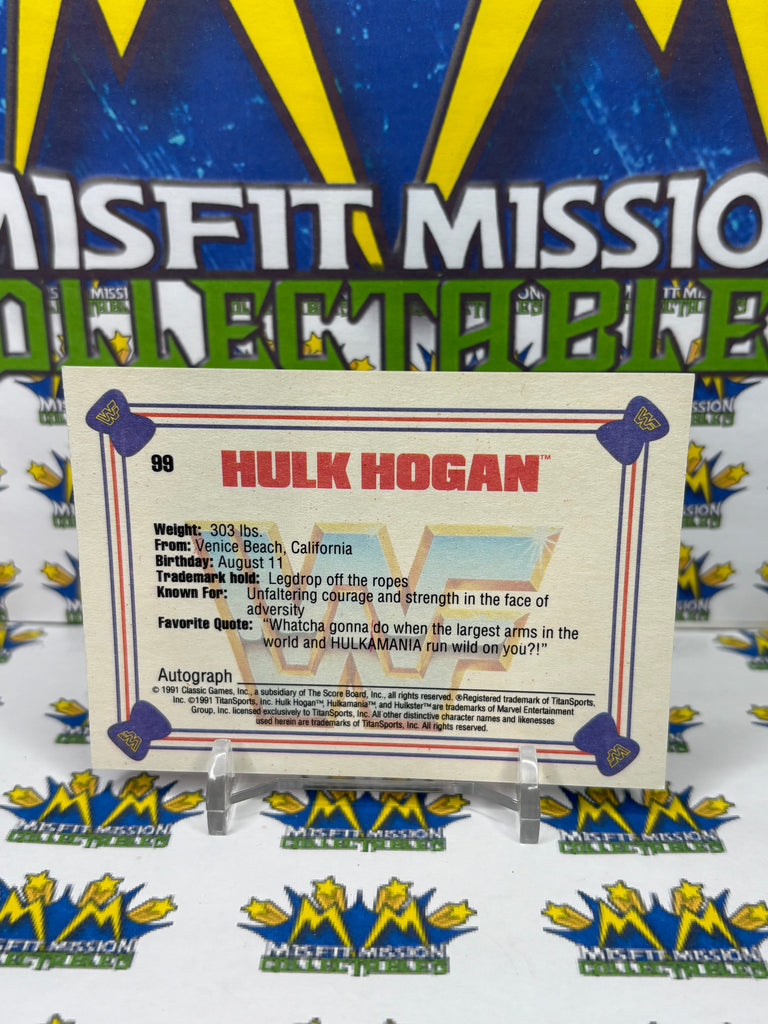 1991 WWF Classic Games Hulk Hogan #99 Trading Card, previously owned in good condition.