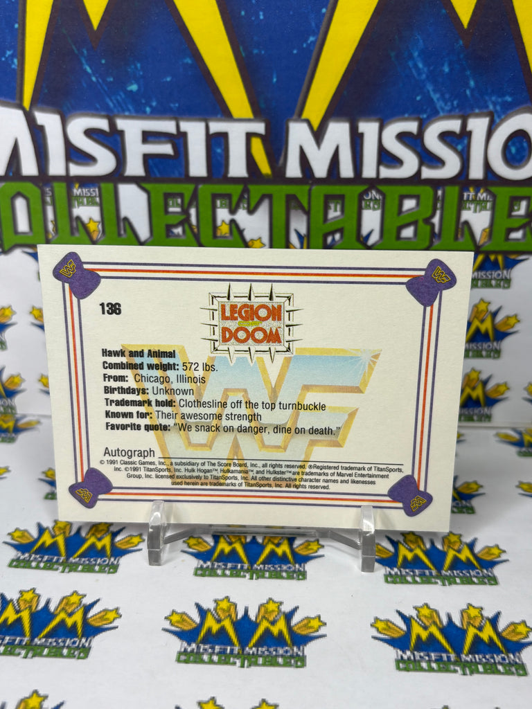 1991 WWF Classic Games Legion of Doom #136 Trading Card, previously owned in good condition.
