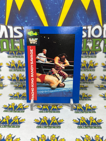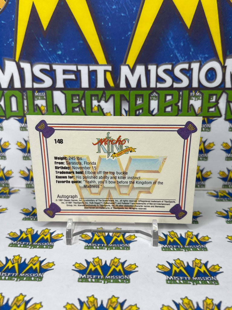 1991 WWF Classic Games Macho King Randy Savage #148 Trading Card, previously owned in good condition.