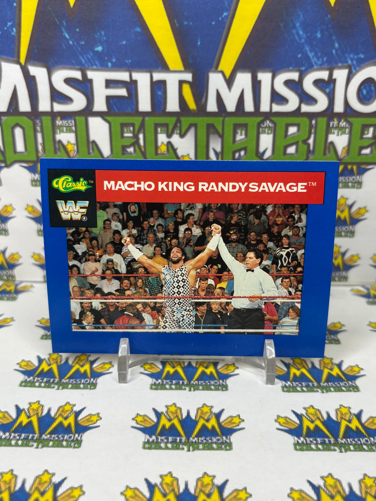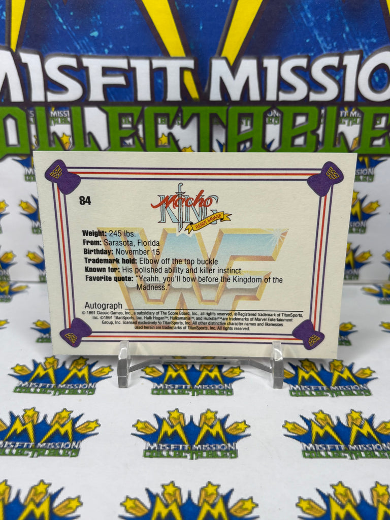 1991 WWF Classic Games Macho King Randy Savage #84 Trading Card, previously owned in good condition.