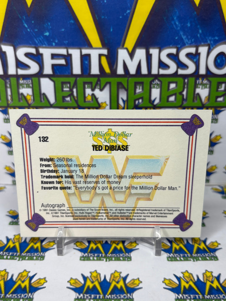 1991 WWF Classic Games Million Dollar Man Ted Dibiase #132 Trading Card, previously owned in good condition.