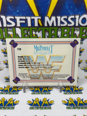 1991 WWF Classic Games Mr. Perfect #113 Trading Card, previously owned in good condition.