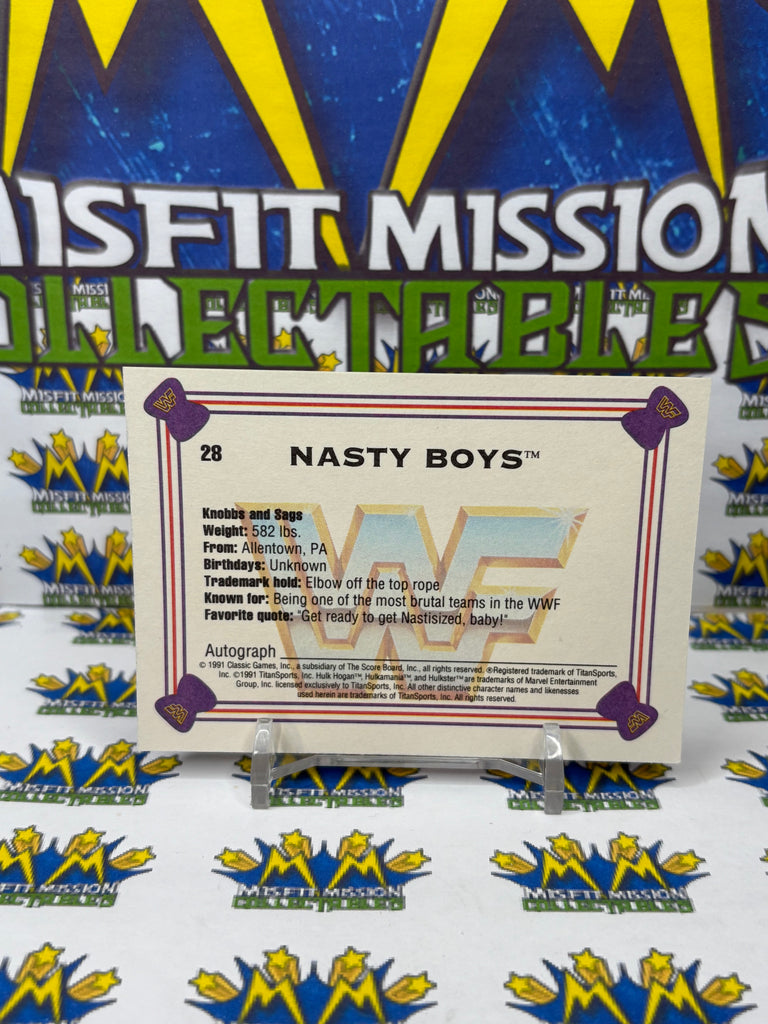 1991 WWF Classic Games Nasty Boys #28 Trading Card, previously owned in good condition.