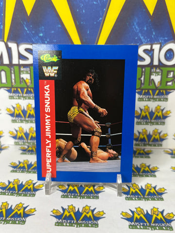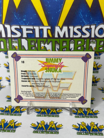 1991 WWF Classic Games Superfly Jimmy Snuka #18 Trading Card, previously owned in good condition.