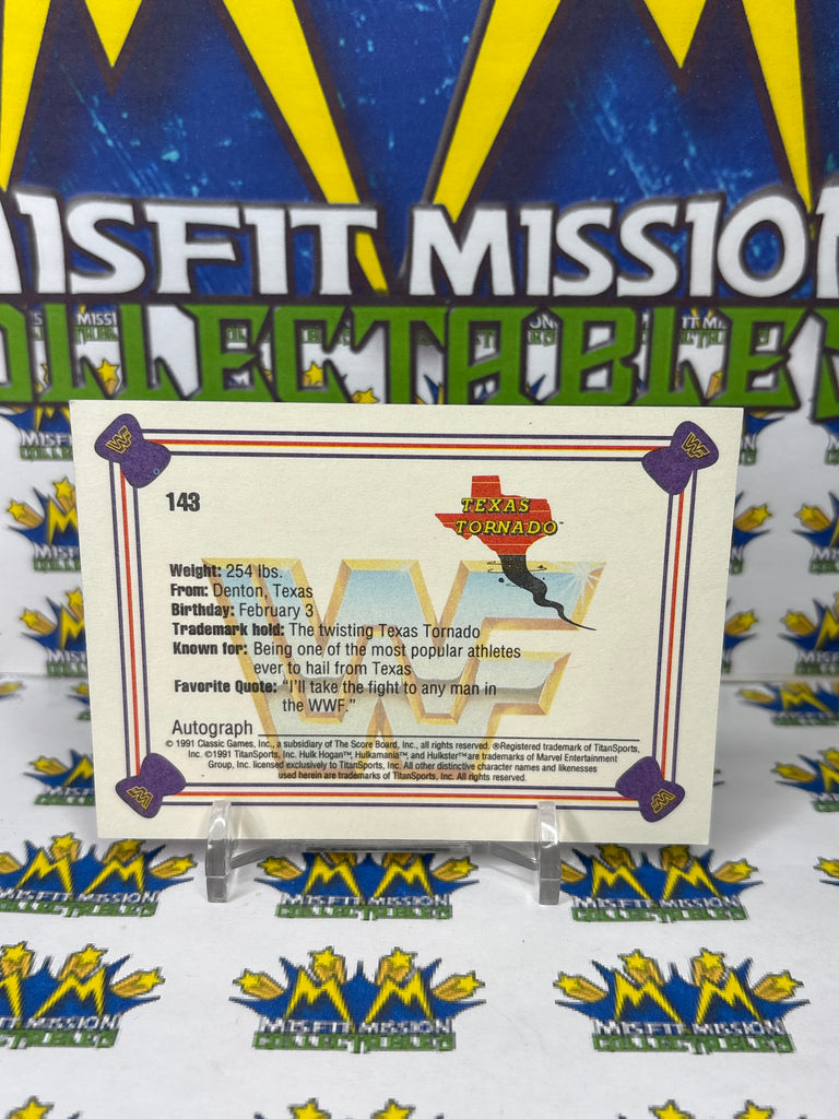 1991 WWF Classic Games Texas Tornado #143 Trading Card, previously owned in good condition.