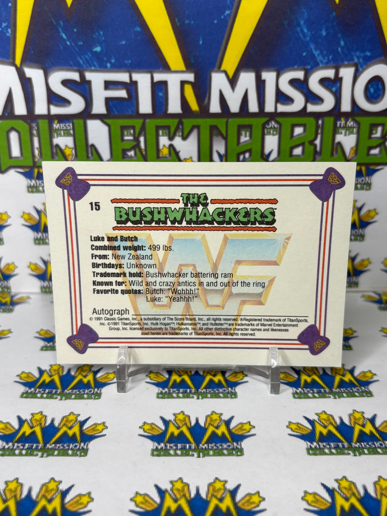1991 WWF Classic Games The Bushwhackers #15 Trading Card, previously owned in good condition.