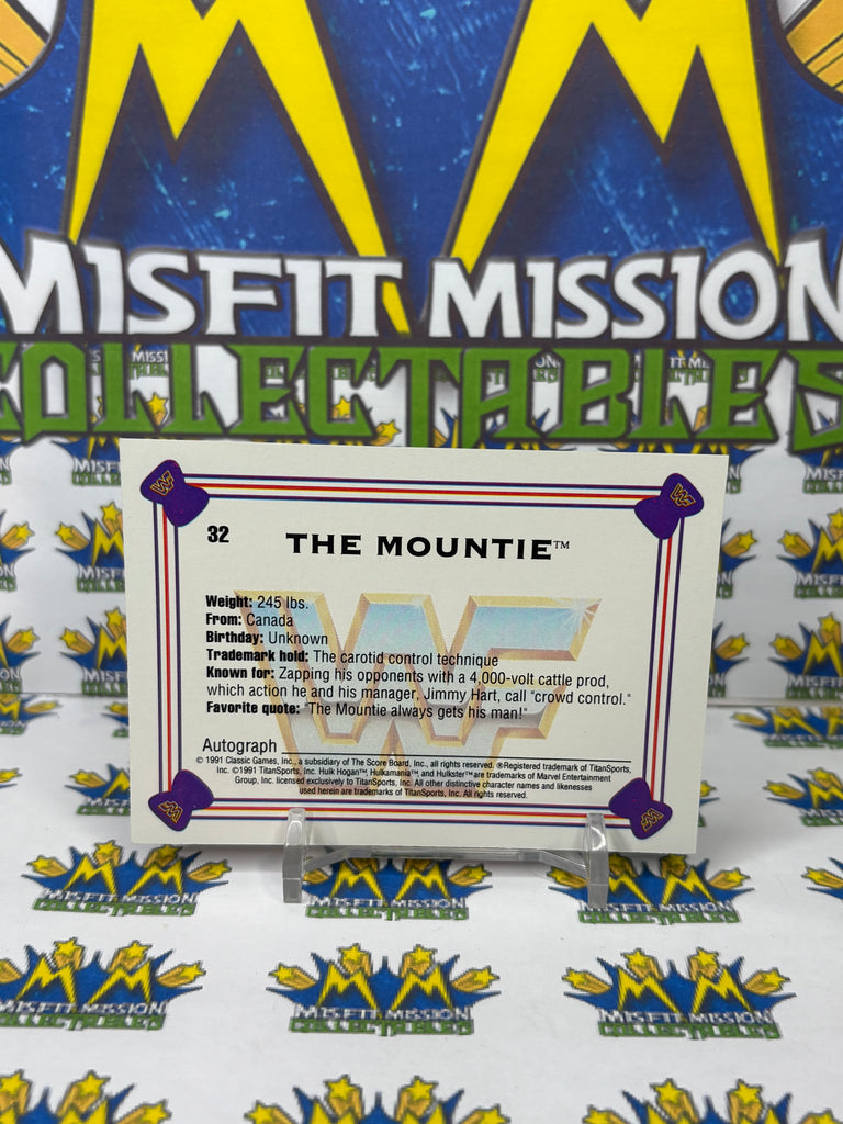 1991 WWF Classic Games The Mountie #32 Trading Card, previously owned in good condition.