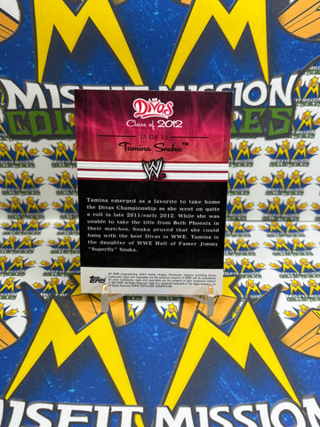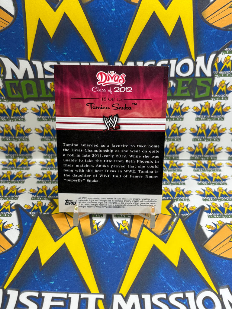 2012 Topps WWE Divas Class of 2012 Tamina Snuka #15 of 15 Trading Card, is a must-have for any wrestling fan. Perfect for adding to your collection or trading with fellow fans.