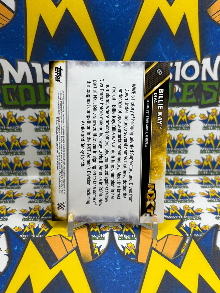 2016 Topps WWE NXT Diva Billie Kay First Card #8 Trading Card. This card is a must-have for any wrestling fan. Perfect for adding to your collection or trading with fellow fans.