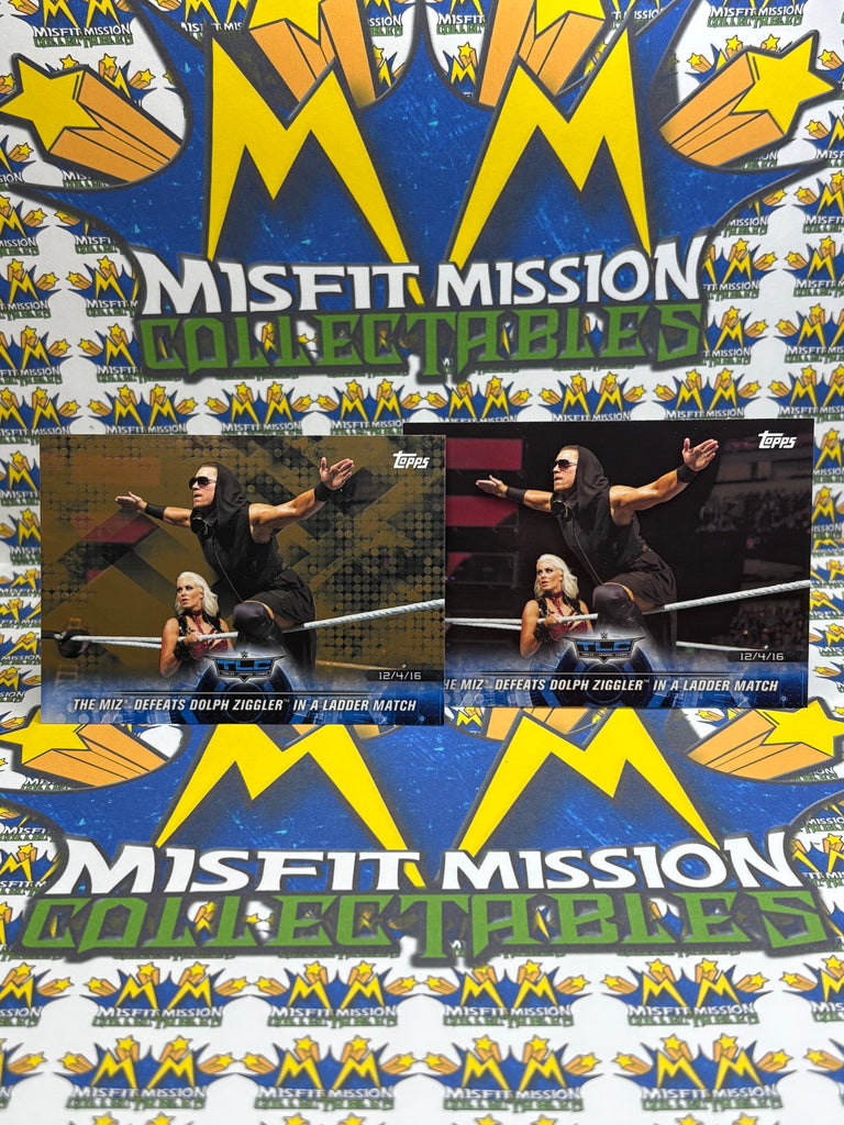 2018 Topps WWE Road To Wrestlemania The Miz Defeats Dolph Ziggler Bronze Parallel #65 Trading Card
