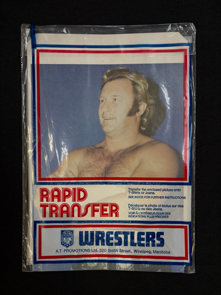 Vintage 1970’s AWA Nick Bockwinkle T-Shirt Transfer & 8x10, never owned in good condition. This transfer comes with a 8x10 promo picture in the original package and is in great collecting condition, but it is not guaranteed to transfer properly. I have had some work and work well. But some have not worked at all.