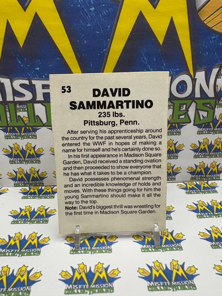 Vintage 1985 Wrestling All-Stars David Sammartino #53 Trading Card Hand Cut, previously owned in good condition.