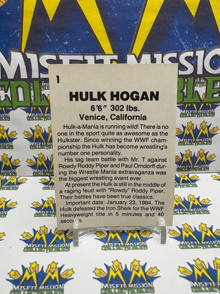 Vintage 1985 Wrestling All-Stars Hulk Hogan #1 Trading Card Hand Cut, previously owned in good condition.