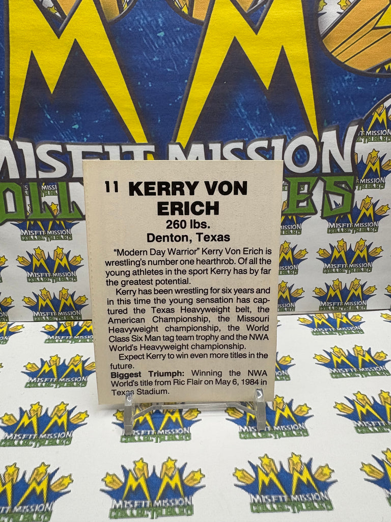 Vintage 1985 Wrestling All-Stars Kerry Von Erich #11 Trading Card Hand Cut, previously owned in good condition.