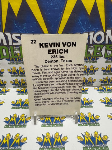 Vintage 1985 Wrestling All-Stars Kevin Von Erich #22 Trading Card Hand Cut, previously owned in good condition.