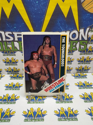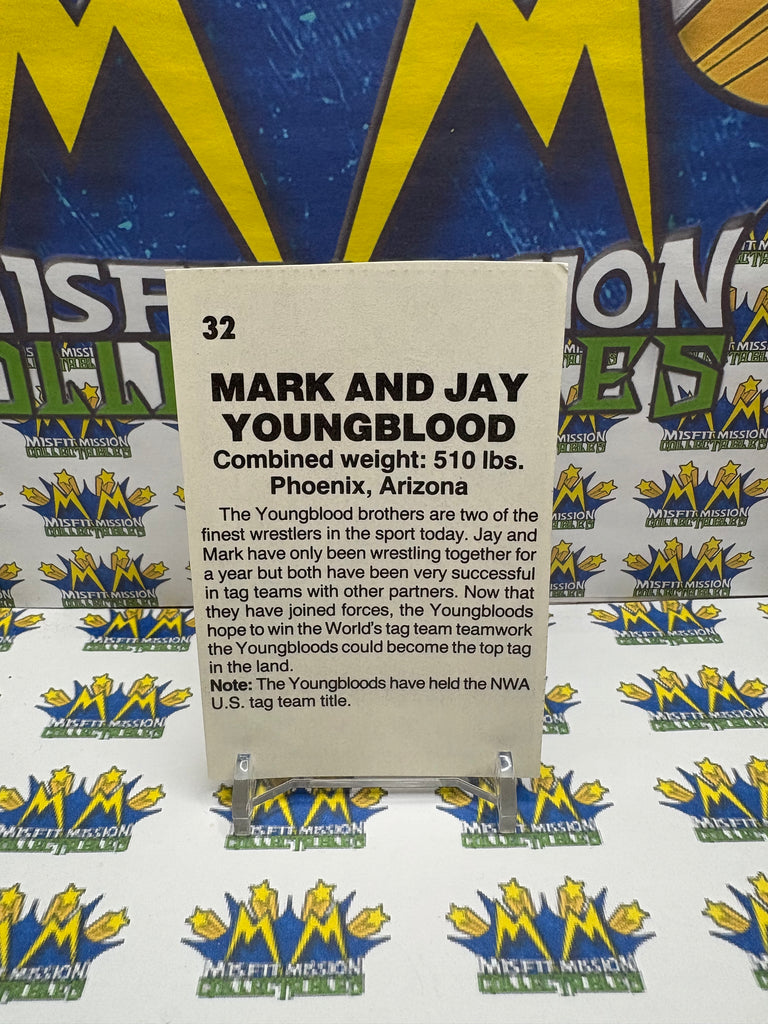 Vintage 1985 Wrestling All-Stars Mark and Jay Youngblood #32 Trading Card Hand Cut, previously owned in good condition.