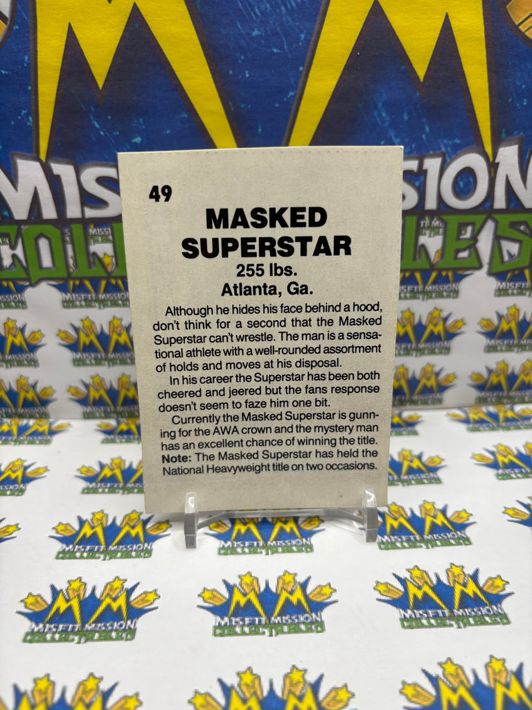 Vintage 1985 Wrestling All-Stars Masked Superstar #49 Trading Card Hand Cut, previously owned in good condition.
