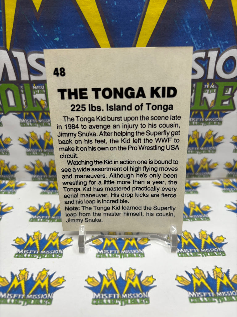 Vintage 1985 Wrestling All-Stars The Tonga Kid #48 Trading Card Hand Cut, previously owned in good condition.
