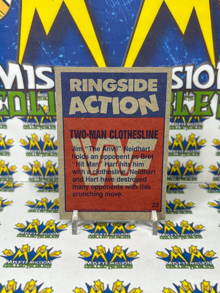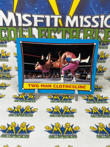 WWE/WWF TOPPS 1987 #22 Two Man Clothesline Trading Card, previously owned in good condition.