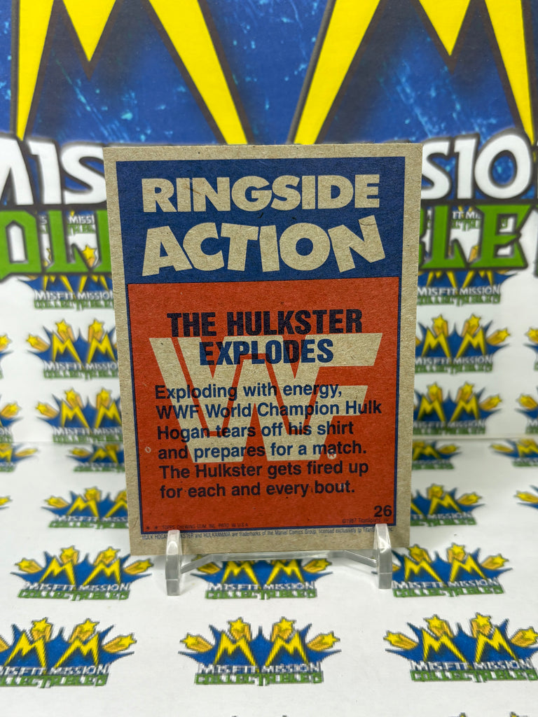 WWE/WWF TOPPS 1987 #26 The Hulkster Explodes Trading Card, previously owned in good condition.